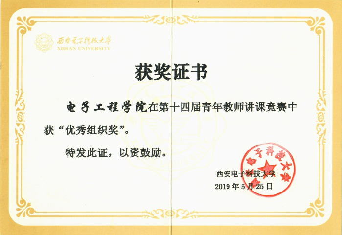 此次,我院共有张欢欢、张铮、臧博等三位老师参加竞赛。经过激烈角逐,张欢欢获得一等奖、张铮获得三等奖、臧博获得优秀奖,学院获得优秀组织奖。这三位参赛老师都是经由2018年10月我院举办的青年教师讲课竞赛选拔而出的。此次赛前,学院领导高度重视,组织廖桂生院长、蔡固顺书记、邓成副院长、路宏敏教授、孙万蓉教授、周佳社教授、王新怀副教授等专家和教学名师为各位选手进行辅导,对参赛选手的课程组织、内容安排、讲课技巧、互动教学等内容进行了细致点评和建议,对他们的获奖起到了积极作用。