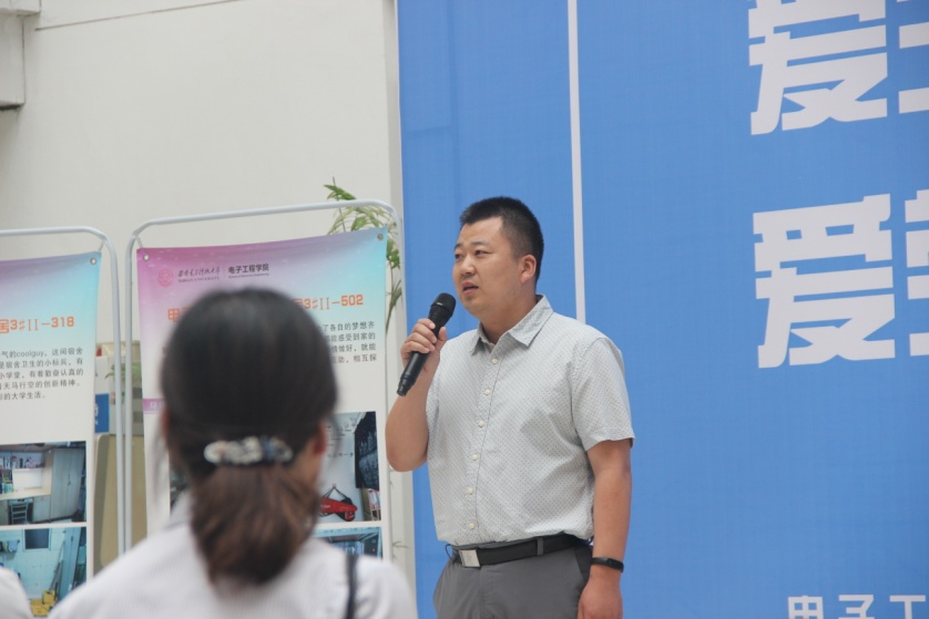 开幕仪式第一项,由6165cc金沙总站检测中心党委副书记刘建锋进行讲话。刘建锋老师首先为同学们讲解了活动的意义并肯定了同学们在文明宿舍创建活动中所付出的努力;随后通过讲述亲身经历及感悟希望同学们切实认识到创建良好安全宿舍环境及体悟劳动精神的重要性;最后希望所有同学提升自我,成为榜样,以点带面,持续进步,能够德智体美劳全面发展。