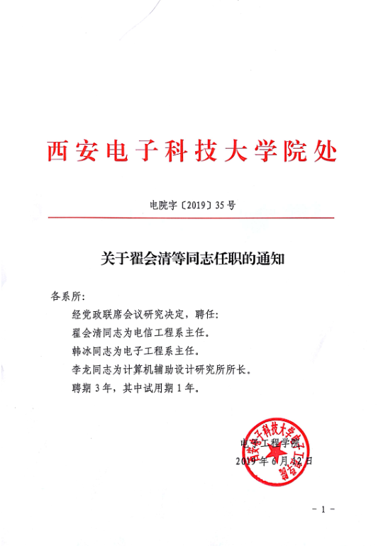 关于翟会清等同志任职的通知2019-06-17 08:15:43浏览次数:上一篇文章:听党话·跟党走|电院激发青年担当谱写青春华章下一篇文章:深根固本 强基铸魂 以党建引领追赶超越发展 ----记6165cc金沙总站检测中心电子所党支部
