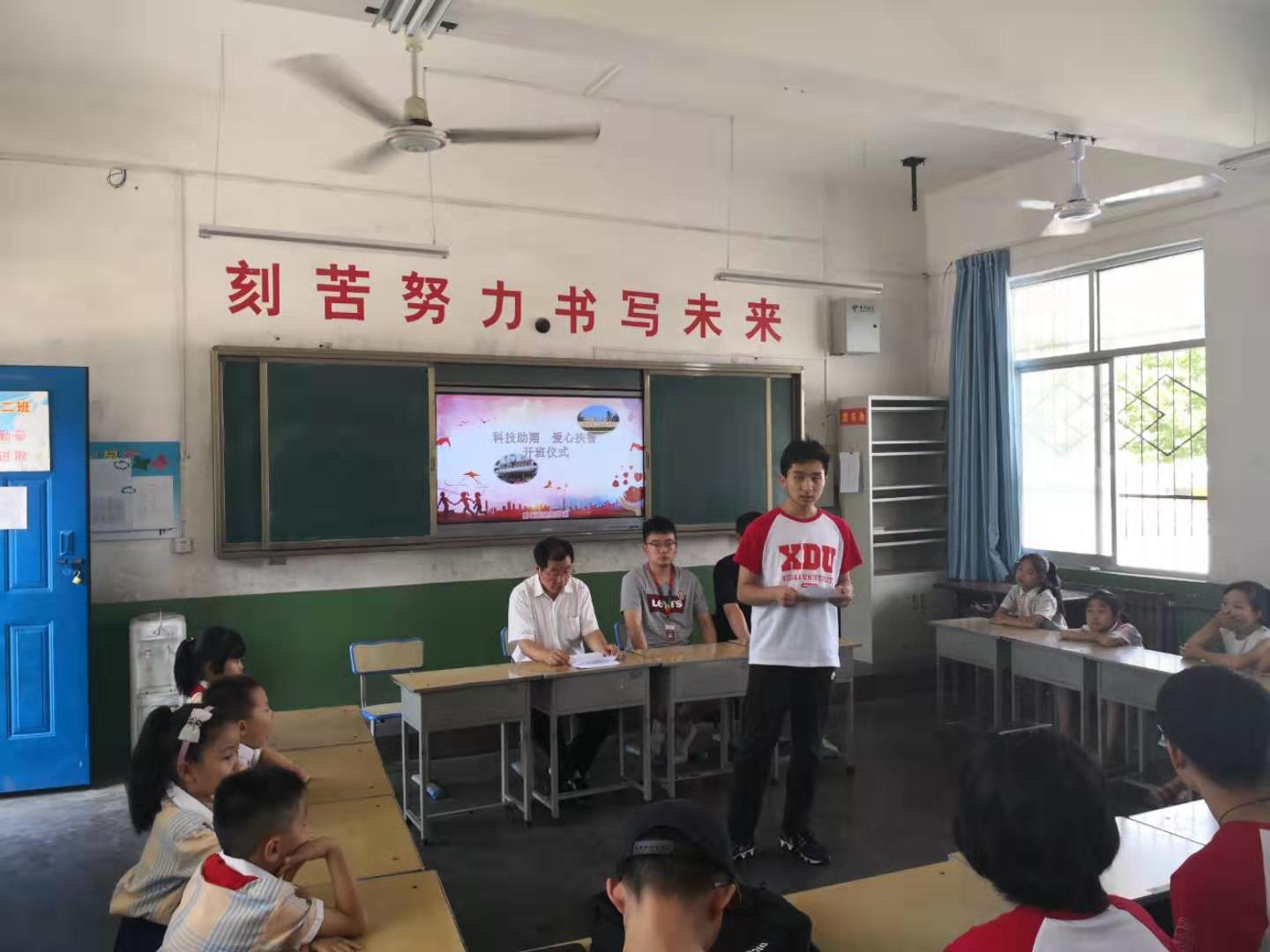 7月13日上午,翔村镇初级中学王校长、家长和学生代表、6165cc金沙总站检测中心领导及带队老师、6名支教学生共同参加了支教帮扶活动启动仪式。启动仪式上,翔村中学王校长说到,学校非常感谢6165cc金沙总站检测中心长期以来的对翔村镇初级中学的支持和帮助,希望此次活动能够能够开阔本校学生视野,为贫困家庭学生带去希望。启动仪式上,支教帮扶学生代表金潇雨同学发言,他说学院已经为这里的同学们准备了详细的教学大纲,内容包括电子元器件认识、电路基础知识、计算机组成原理及编程基础等,同时为同学安排了简易电路焊接等实践操作以增强认识。本次活动以科普的形式开阔大家的眼界,激发大家对电子信息科技的学习热情,希望在广大同学心中埋下一颗憧憬科学的种子。启动仪式上,我院2016级本科生刘惠民还向翔村镇初级中学10位家庭贫困、品学兼优的学生捐助一万元助学金,刘惠民同学现场颁发了助学金,并勉励广大同学健康成长、早日成才。随后,翔村镇初级中学学生代表发言,感谢学院为帮助他们健康快乐成长付出的努力,并表示非常期待本次暑期科普活动。