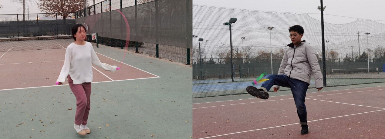 跳绳和踢毽子比赛,在规定一分钟时间内完成次数最多者获胜。冬日的南校区运动场上,参加跳绳比赛的同学们个个身轻如燕,在绳间穿梭自如,一根根跳绳在他们的脚下灵活地上下翻飞;参加踢毽子比赛的同学们全神贯注,眼睛始终跟随毽子转动,不停变化着姿势,将毽子稳稳控制在脚尖,运动员们紧张有序的展现自己的实力。最终,2019级姚逸卓同学获得跳绳比赛女子组第一名,2019级卢浩翔同学获得跳绳比赛男子组第一名;2019级李佳惠同学获得踢毽子比赛女子组第一名,2020级李赫哲同学获得踢毽子比赛男子组第一名。