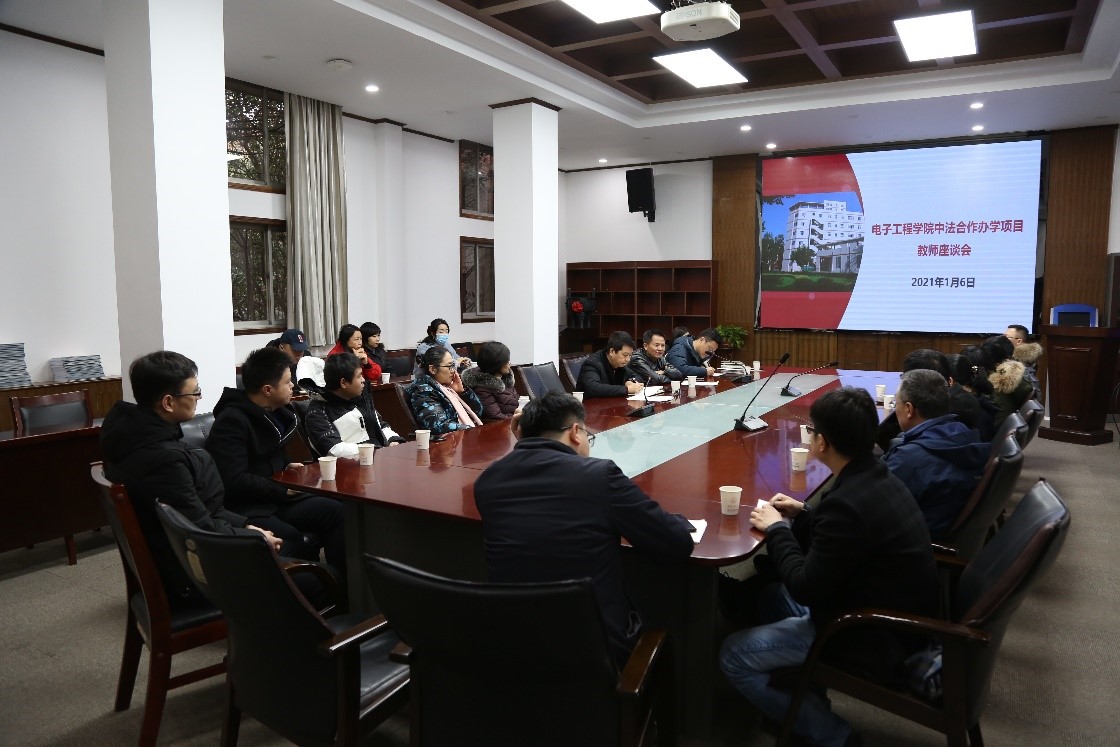 (通讯员 王金龙 张燕菲)为进一步加强中法合作办学项目的办学质量,探索提升人才培养质量的新发展模式,1月6日上午,学院在北校区办公楼第三会议室召开了中法合作办学项目教师座谈会,学院党委书记杨光暐、院长廖桂生,副院长曹静、邓成和项目的任课教师就项目教学、项目发展、学生培养等方面进行了座谈交流。