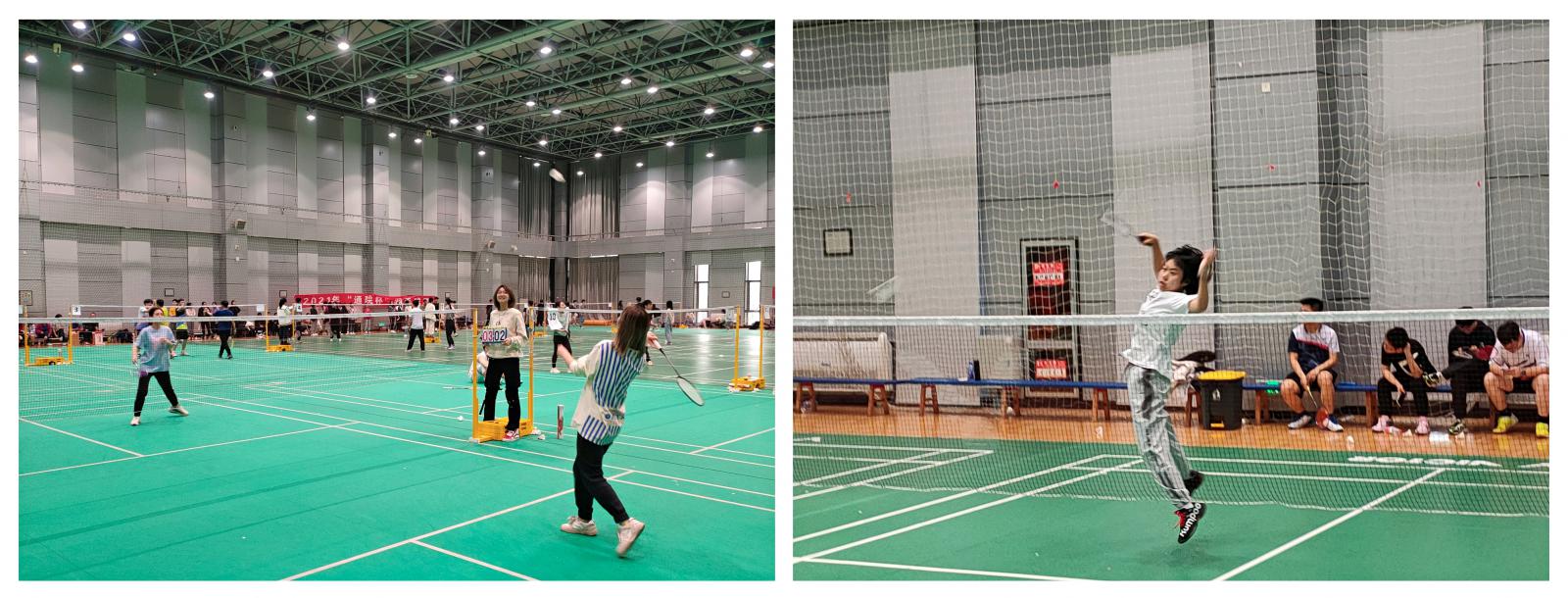 羽毛球比赛在南校区远望谷体育馆内举行,比赛分淘汰赛、半决赛和决赛三个环节,淘汰赛一局定胜负,决赛采用三局两胜制。参赛选手不分年级,按人数分批次进行抽签、比赛。赛场上,选手们精神饱满,充分发挥体育拼搏精神,灵活运用战术,将高远球、扣杀、吊球等球技表现得淋漓尽致,气氛紧张而热烈。场外,加油声、欢呼声不绝于耳。最终2020级和欣然同学获得女子羽毛球单打第一名,2018级张家豪同学获得男子羽毛球单打第一名。