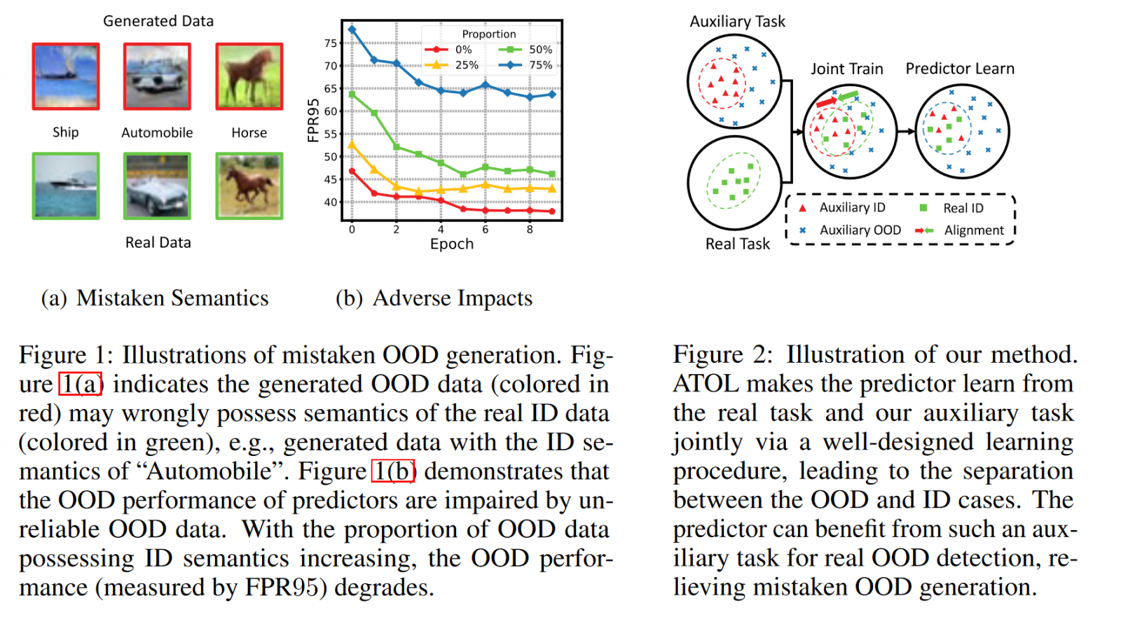 郑皓天的论文《Out-of-distribution Detection Learning with Unreliable Out-of-distribution Sources》创造性地提出了一个分布外学习框架ATOL,简单引入了一个生成的辅助任务,并与实际任务进行对齐训练,使得模型能高效学习到如何检测出分布外数据,大大提高了机器学习模型可信程度。