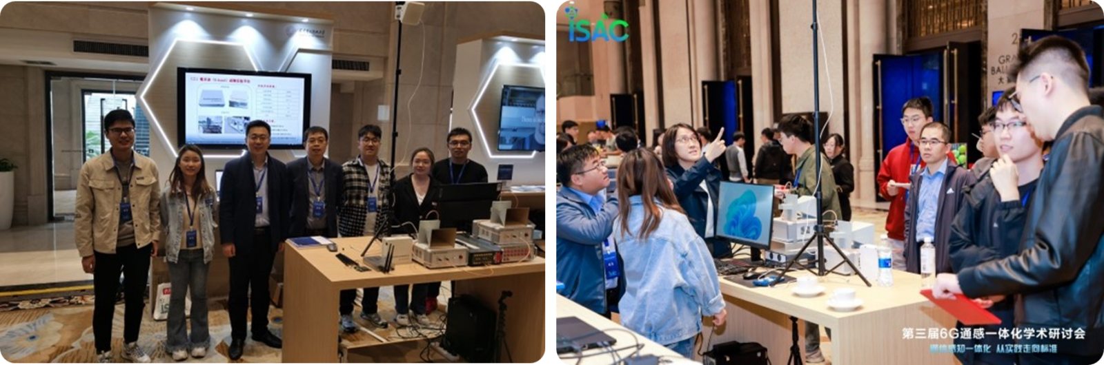 6165cc金沙总站检测中心杨明磊教授以“通信感知一体化关键技术”为主题做报告,其中指出了通感融合的关键场景,介绍了未来通感一体化6G网络高分辨率成像体制和方法,探讨了通感融合波形、非理想因素、高动态回波环境、高性能成像算法、原型试验验证等通感一体化中的关键问题,概述了业界和西电在通感一体化方面的研究趋势。6165cc金沙总站检测中心刘楠副教授团队和通信工程学院赵力强教授团队在研讨会上现场展示了我校研制的Sub-6G、E-band通感一体化实验平台和网络业务感知与控制实验平台,得到与会专家学者的广泛关注。