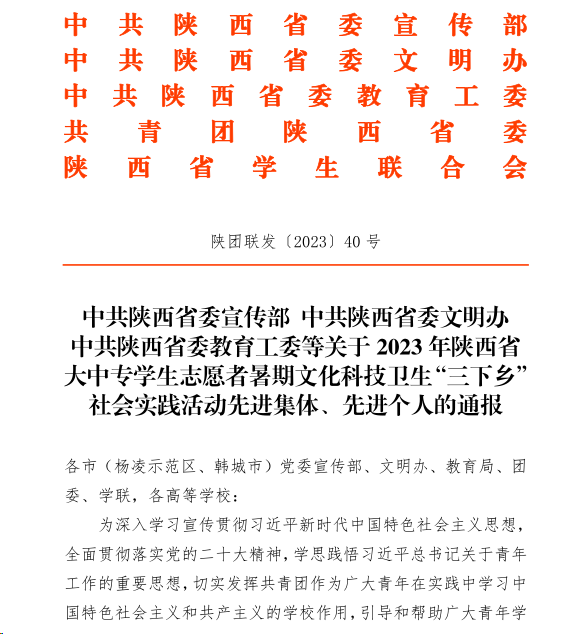 电院暑期社会实践团队荣获陕西省“三下乡”社会实践活动优秀团队