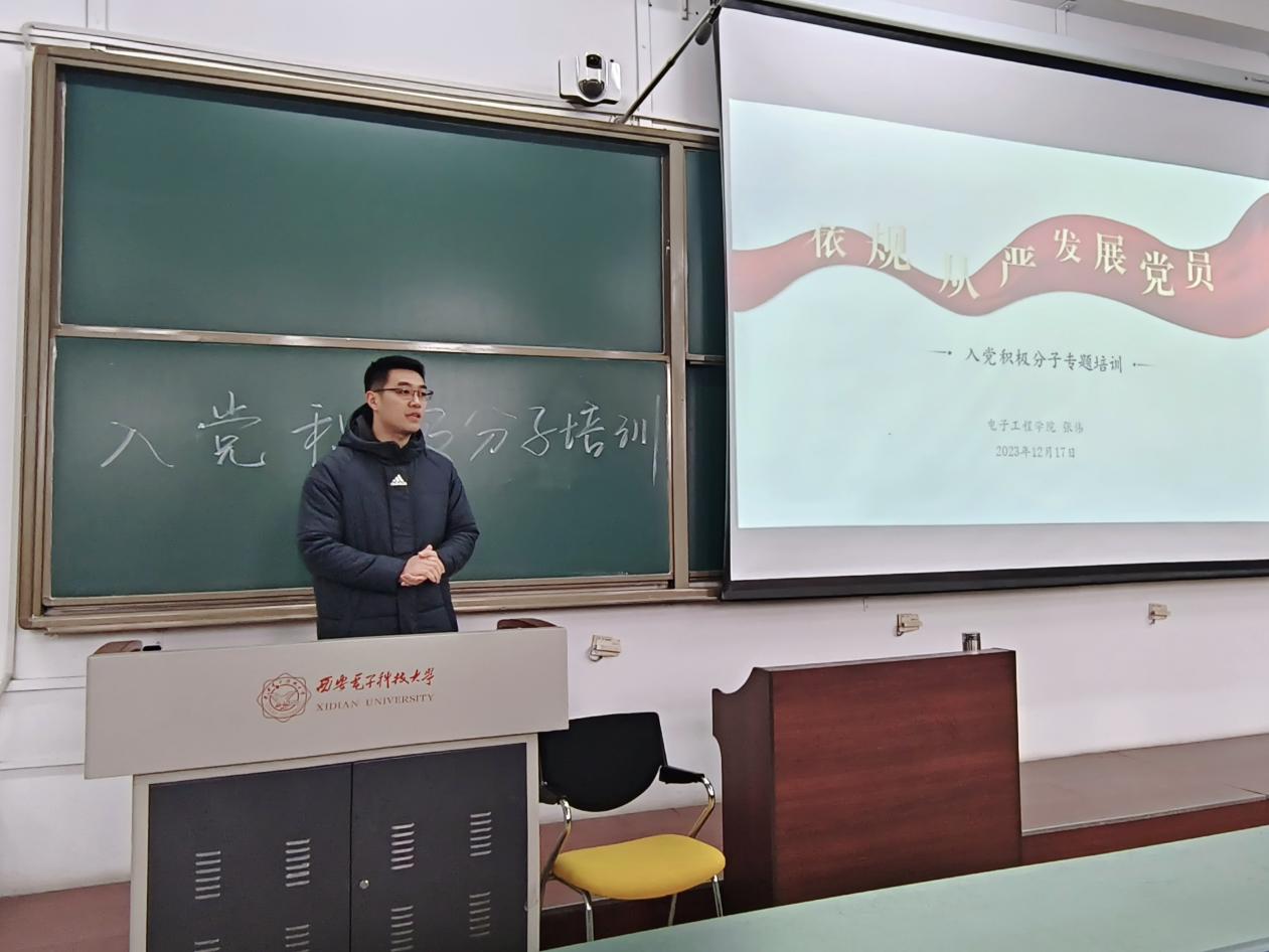 张伟以“依规从严发展党员”为主题开展了发展党员的工作程序教育,强调了党员发展流程规范和入党材料书写规范,详细讲解党员发展过程中的各个环节。他表示,入党积极分子应加强思想理论学习、以党的科学理论武装头脑,认真学习专业知识、努力追求全面发展,以党员标准严格要求自己、以实际行动争取早日入党。