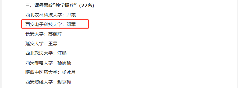 全校唯一 | 电院邓军教授获2023年度陕西省课程思政“教学标兵”称号