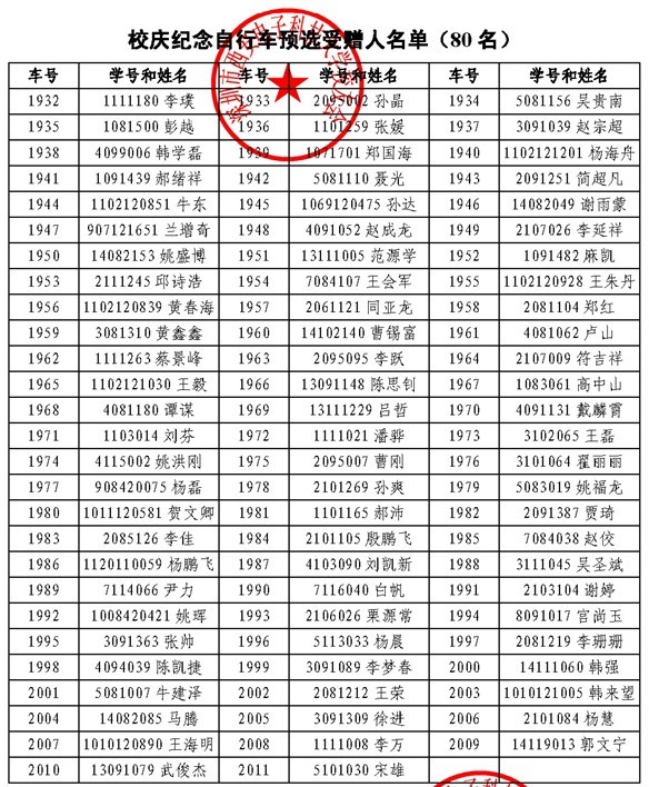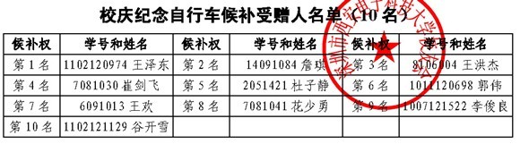 八十部校庆纪念自行车受赠人产生
