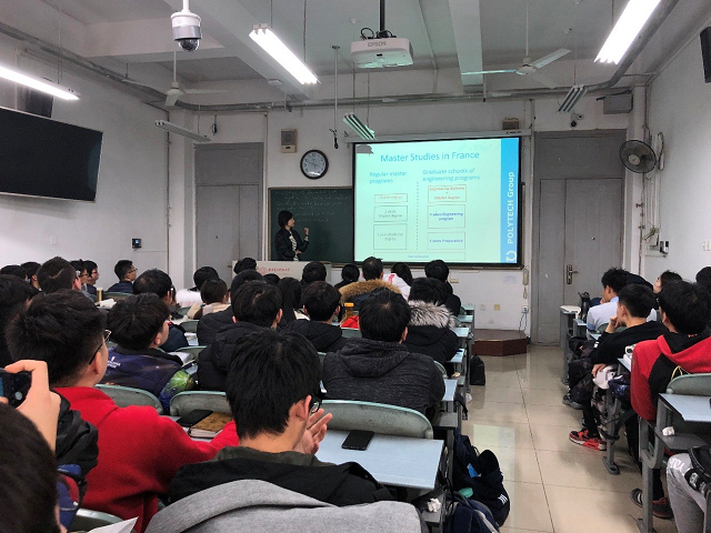 (通讯员 吴媛媛 殷乐雨)12月19日下午,在南校区C楼423教室,法国综合理工联盟欧盟奖学金负责人尹娜老师为中法合作办学项目2018级新生做了一场精彩生动的宣讲会,旨在让18级新生对法国的工程师教育有更进一步的了解,为学生们日后的学习增强信心,做好规划。